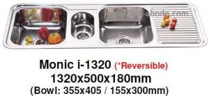 - Monic i-1320 Stainless Steel Inset Mount Reversible Double Bowl with Drainer Kitchen Sink