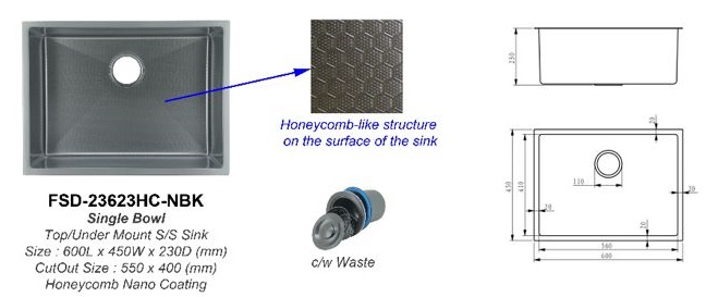 Fidelis – Honeycomb Nano Black Kitchen Sink – FSD-23623HC-NBK