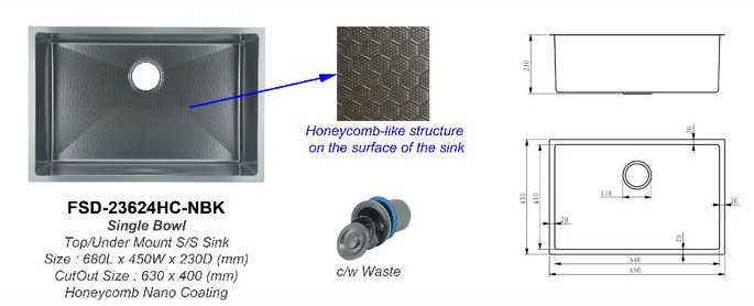 Fidelis – Honeycomb Nano Black Kitchen Sink – FSD-23624HC-NBK